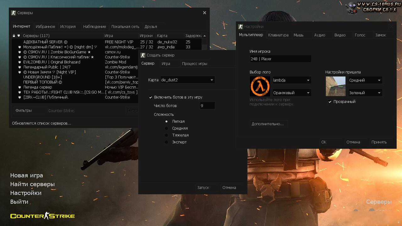 В плане стабильности, отсутствии вылетов и лагов все идеально. Каждая вкладка открывается моментально, меню не лагает, к серверам подключиться можно за считанные секунды. Другими словами, сборка может похвастаться не только своей красивой «оберткой», но и технической начинкой. Так как у нас большой опыт игры в КС 1.6, мы прекрасно понимали, как сделать свою версию стабильной, но при этом добавив в нее множество новшеств.